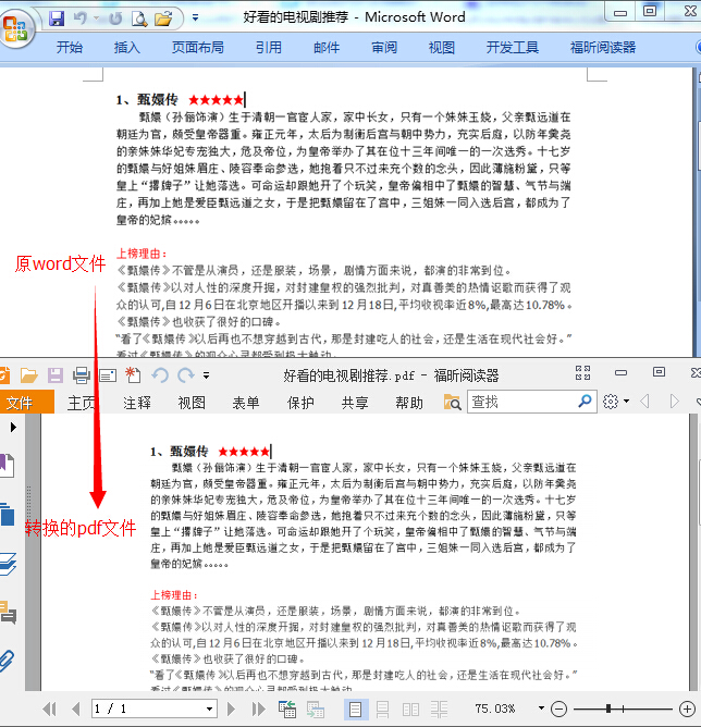 第6步,打开转换的PDF文件,将其与之前的word文件内容进行比较,查看文件转换效果。