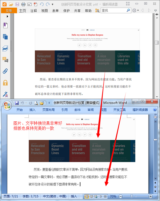 步骤7:打开转换的word文件,将其与之前的pdf文件内容进行比较,查看转换效果。